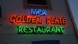 18.30 Uhr | Wir machen uns auf den Weg Richtung Golden Plate. Vorab kaufen wir aber für Michas neues Smartphone eine Schutzhülle. Im Golden Plate sind die Tische wunderbar eingedeckt, aber außer uns und einem Pärchen möchte um 19.30 Uhr noch niemand essen. Humus, Mushrooms, Chicken Salad, Salad, Ballonbrot und Chicken Plank – wir genießen das leckere Essen.